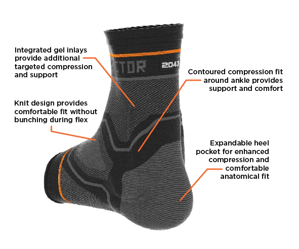 The Compression Knit Ankle Sleeve with Gel Support is ideal for athletes seeking breathable compression that contours to the body and is soft to the touch. This sleeve is made with a comfortable knit design, so you can wear it all day without discomfort.
