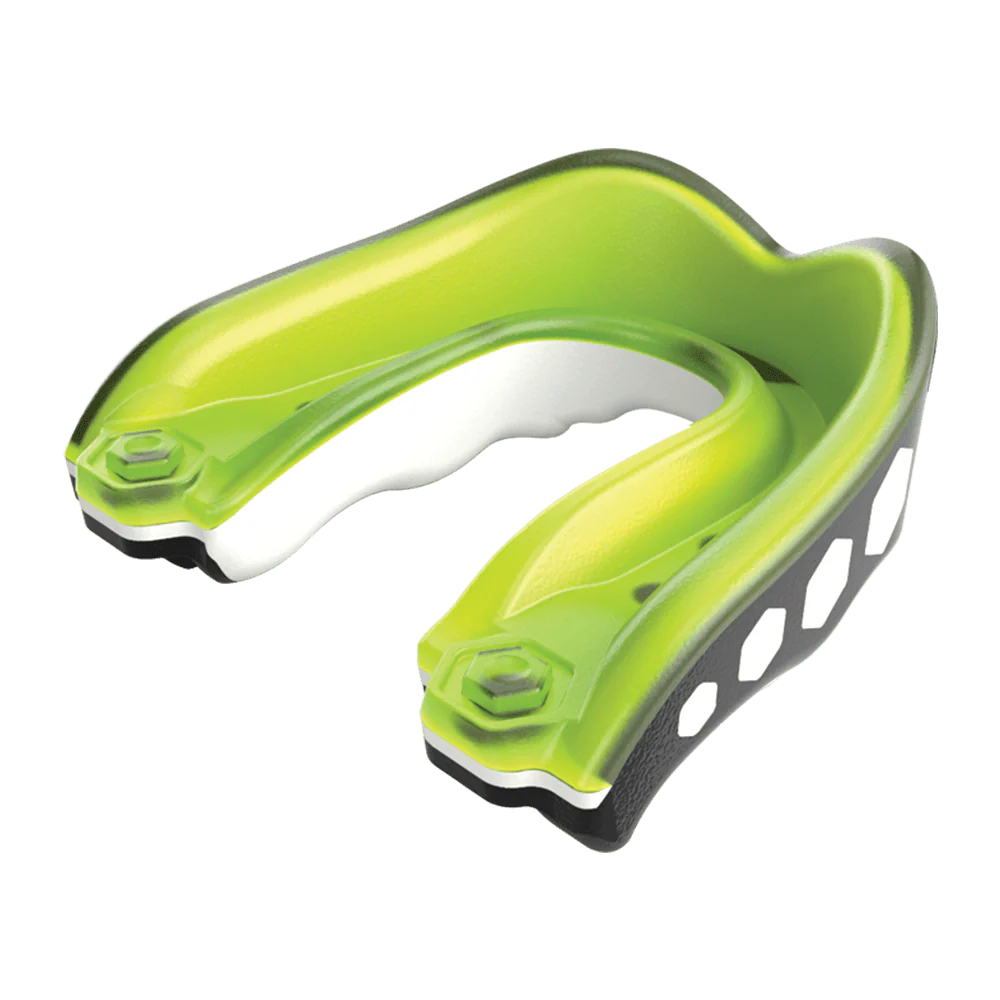The Gel Max Flavor Fusion Mouthguard delivers essential protection and comfort. Includes a convertible quick-release tether that allows the mouthguard to be used strapped or strapless. This triple layer mouthguard provides a universal fit for all ages. Comes in multiple flavors to suite anyone's taste!